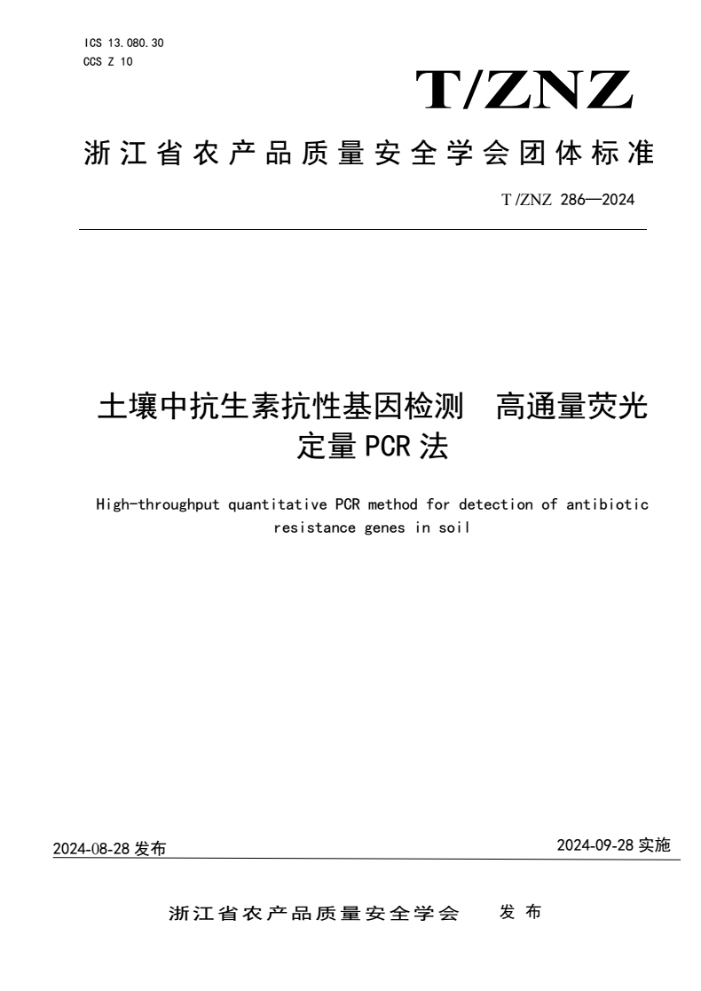 标准名称:土壤中抗生素抗性基因检测 高通量荧光 定量 PCR 法