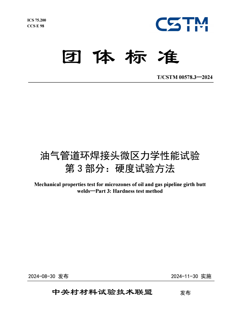 标准名称:油气管道环焊接头微区力学性能试验 第3部分:硬度试验方法
