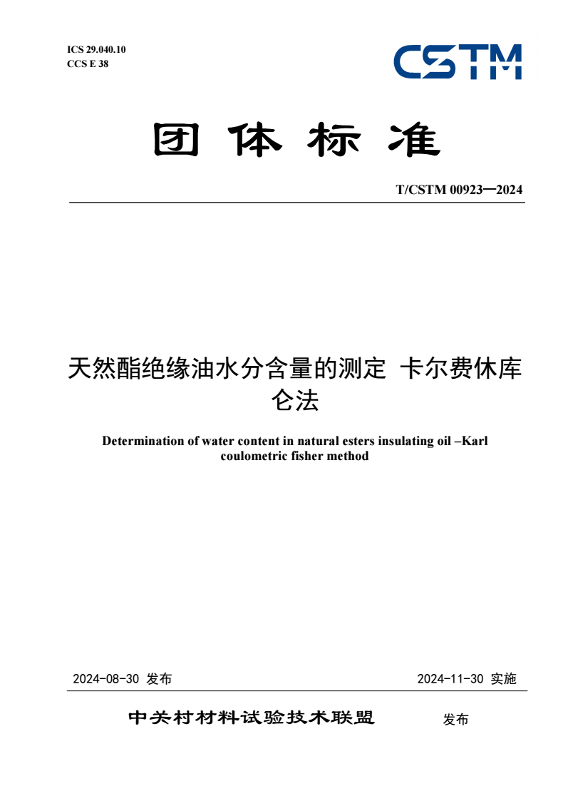 英文名称:Determination of water content in natural esters insulating oil –Karl coulometric fisher method