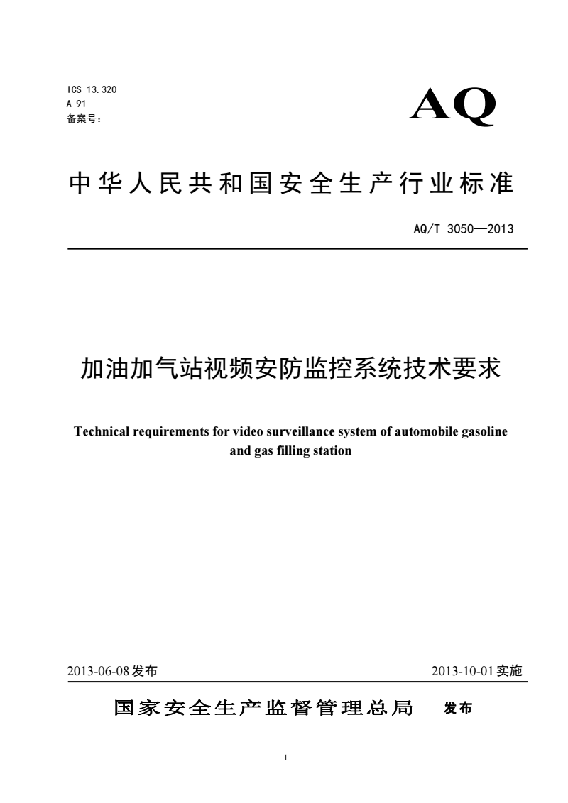 英文名称:Technical requirements for video surveillance and control system of filling station