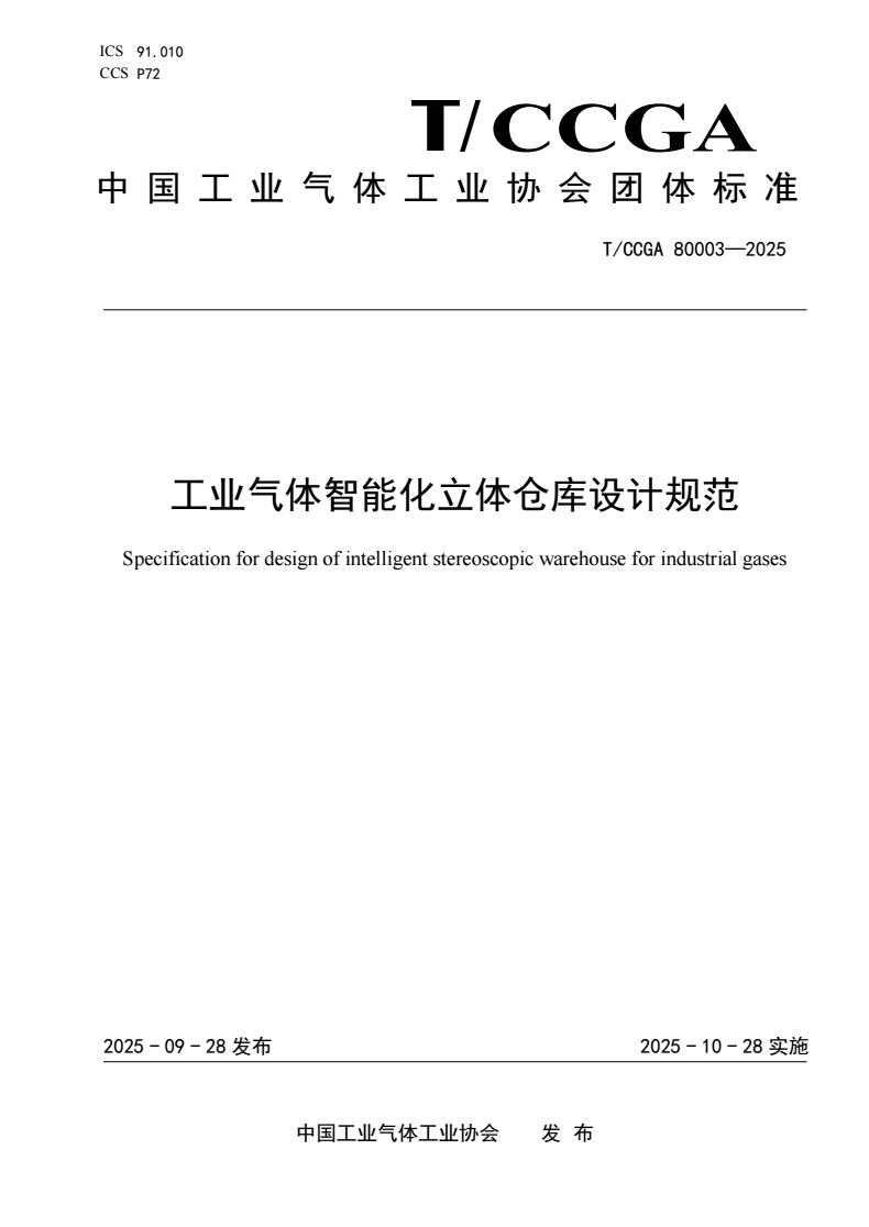 本文件适用于工业气体企业内储存工业气体的智能化立体仓库的新建、扩建或改建设计。