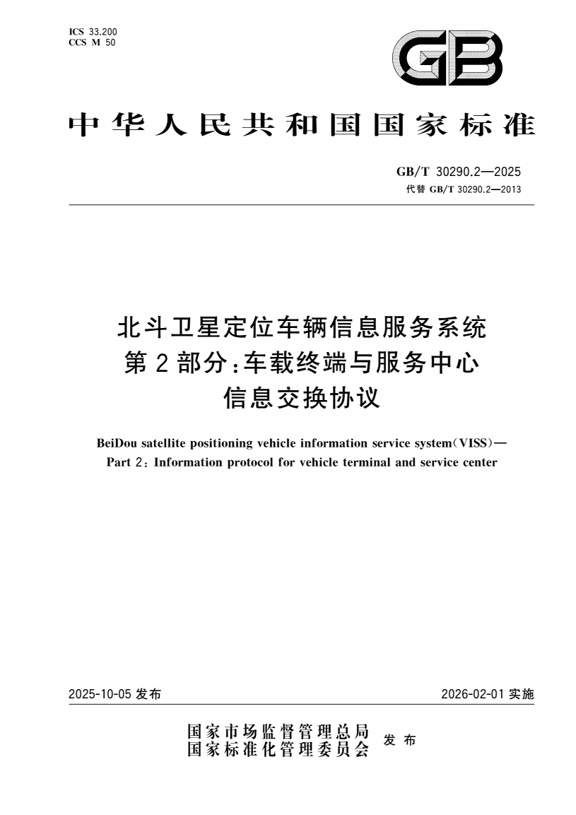 标准名称:北斗卫星定位车辆信息服务系统 第2部分:车载终端与服务中心信息交换协议