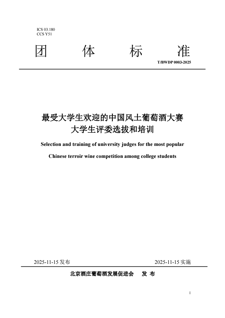 标准名称:最受大学生欢迎的中国风土葡萄酒大赛大学生评委选拔和培训