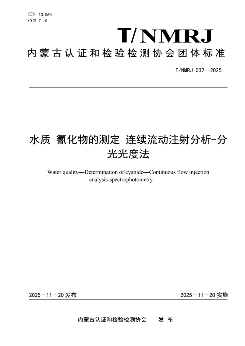 标准编号:T/NMRJ 032-2025
