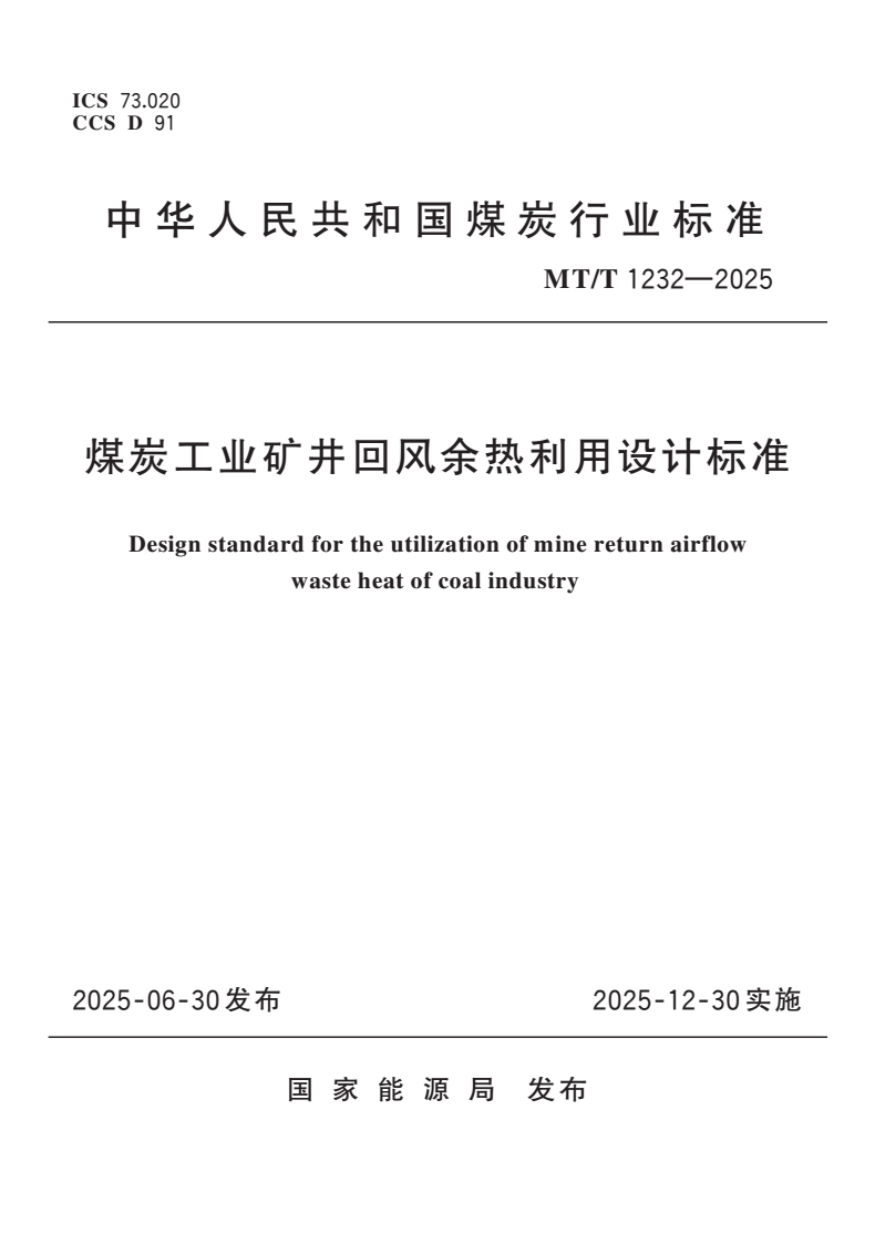 MTT 1232-2025 煤炭工业矿井回风余热利用设计标准.pdf