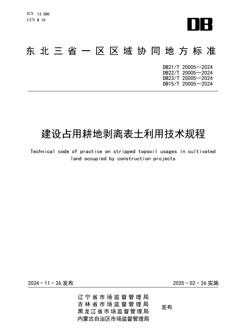 标准名称:建设占用耕地剥离表土利用技术规程