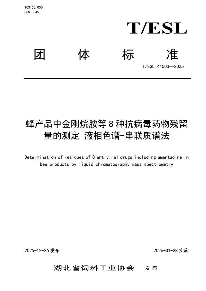 标准名称:蜂产品中金刚烷胺等8种抗病毒药物残留量的测定 液相色谱-串联质谱法