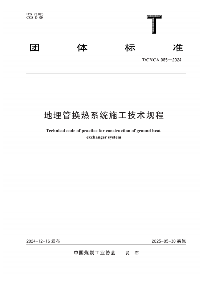 T/CNCA 085-2024 地埋管换热系统施工技术规程