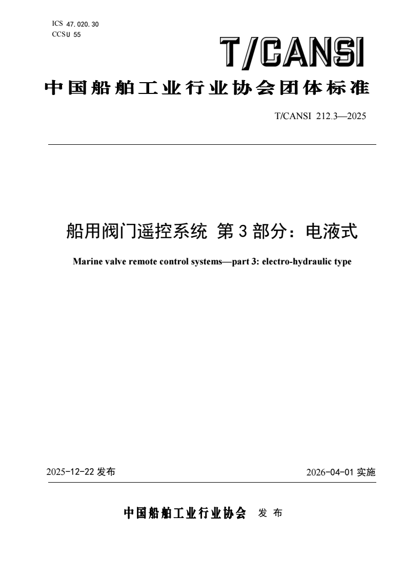 T/CANSI 212.3-2025 船用阀门遥控系统 第3部分:电液式