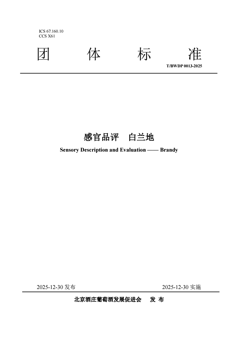 本标准确立了一套适用于白兰地的感官品评术语体系、描述方法与综合评价框架。