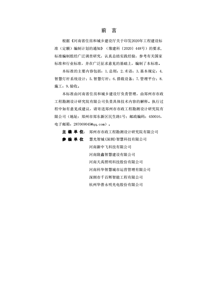 本标准适用于河南省新建和改建的城市道路照明工程中,15m及以下多功能智慧灯杆系统的设计、施工及验收。
