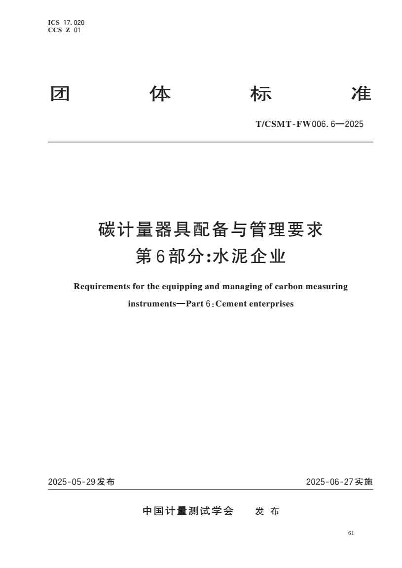 标准名称:碳计量器具配备与管理要求 第6部分:水泥企业