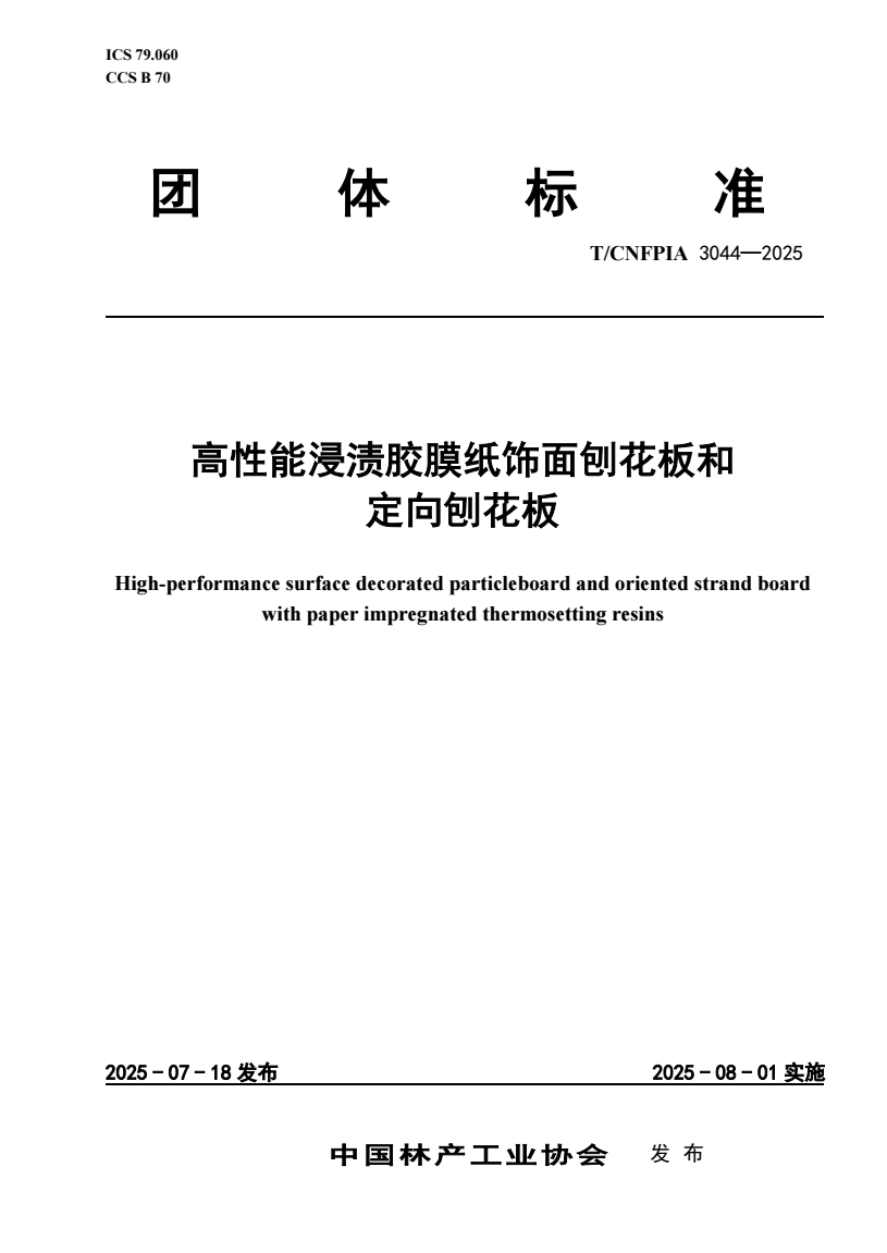 标准名称:高性能浸渍胶膜纸饰面刨花板和定向刨花板