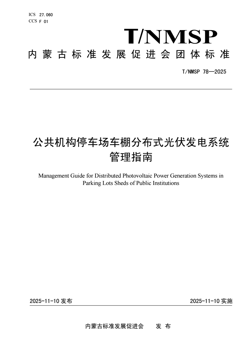 标准名称:公共机构停车场车棚分布式光伏发电系统管理指南