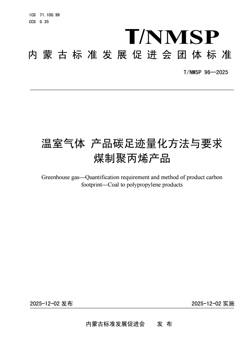 标准名称:温室气体 产品碳足迹量化方法与要求 煤制聚丙烯产品