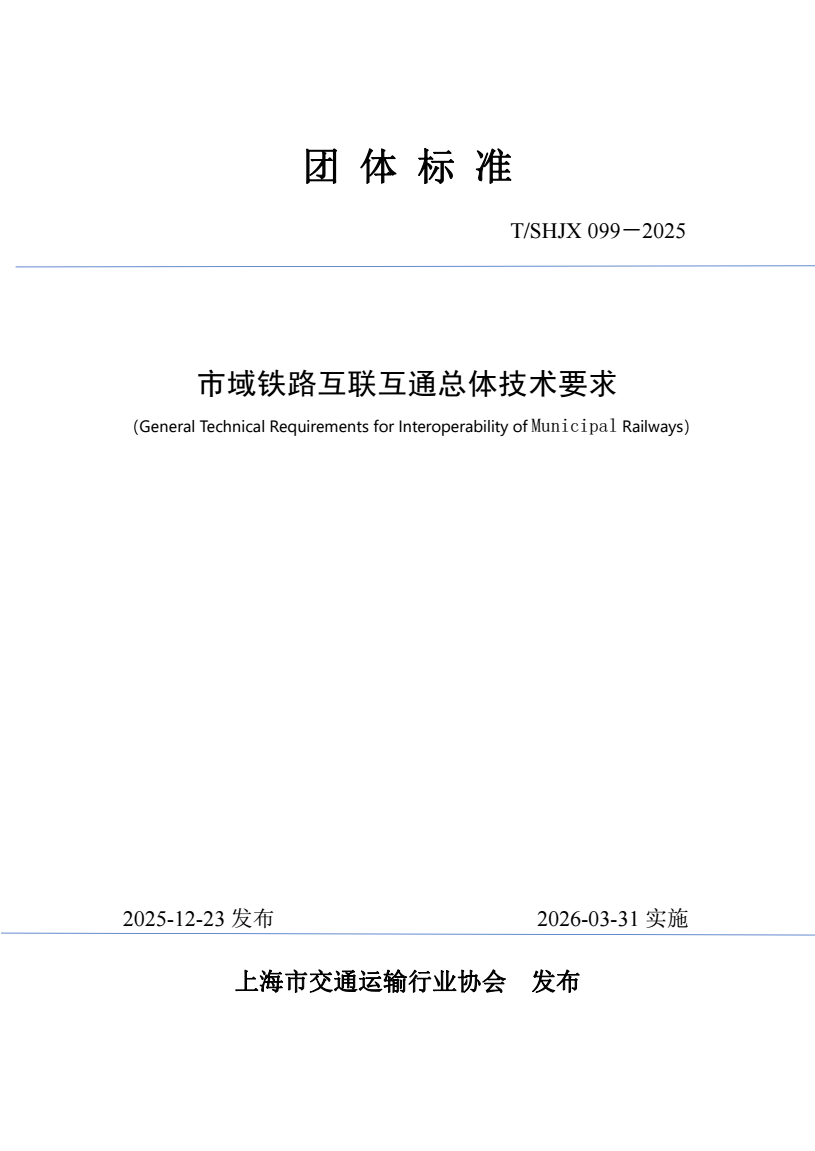 为贯彻《国家综合立体交通网规划纲要》《关于培育发展现代化都市圈的指导意见》等文件关于推动都市圈交通一体化发展、构建轨道交通“一张网”的总体要求,促进长三角地区市域铁路高效建设和网络化运营,依据上海市交通运输行业协会《关于同意〈市域铁路互联互通总体技术要求〉团体标准立项的通知》(沪交协〔2024〕77 号),编制组在广泛调研基础上,参考国内外市域铁路、城际铁路及城市轨道交通的成熟经验,结合国家、行业及地方相关规范,经多方征求意见,制定本技术要求。本要求涵盖范围,术语和符号,基本规定,线网规划,设计技术要求,运营管理,票务管理,治安、反恐与安检安保管理,运维管理和应急管理共 10 个章节,以市域铁路建设与运营基本要求为依据,重点明确跨区域互联互通跨线运营场景下的系统性技术规范。为适应技术快速发展趋势,本标准将实施动态维护机制,原则上每三年组织一次系统性复审,并根据技术进步情况适时修订,以保障其技术内容的先进性、适用性与持续生命力。