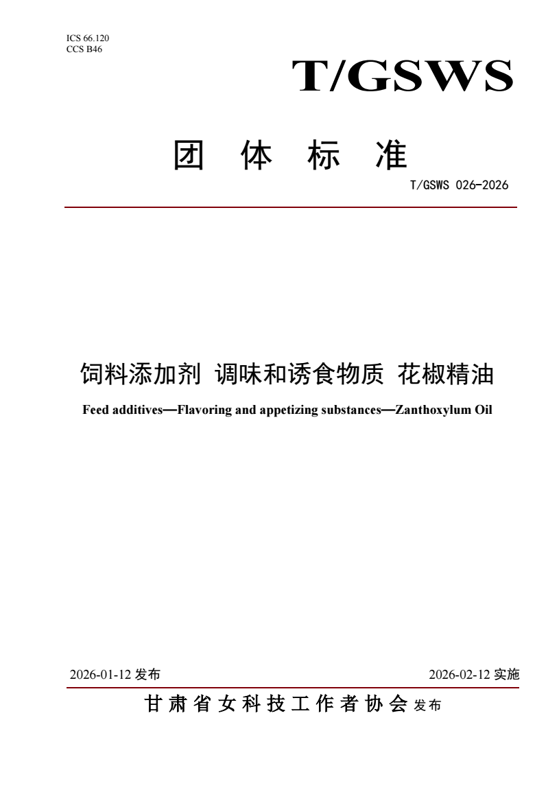 标准名称:饲料添加剂 调味和诱食物质 花椒精油