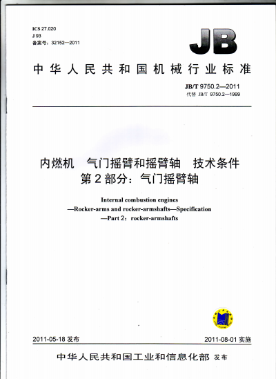 标准名称:内燃机 气门摇臂和摇臂轴 技术条件 第2部分:气门摇臂轴
