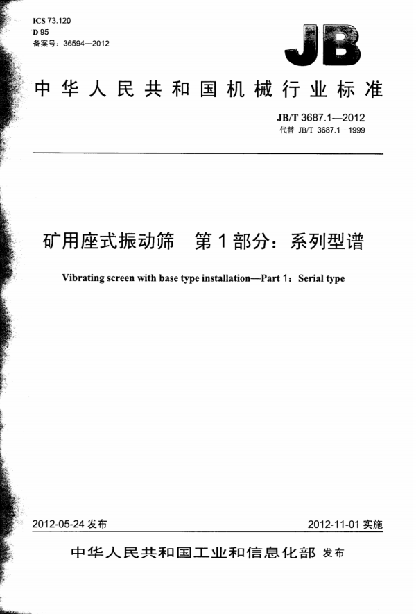 标准名称:矿用座式振动筛 第1部分:系列型谱