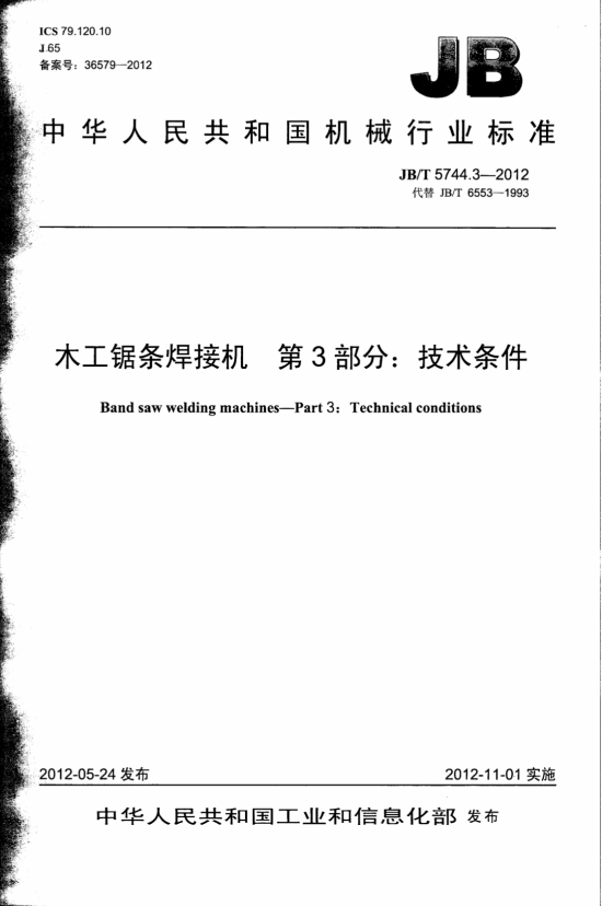 JB/T 5744.3-2012 木工锯条焊接机 第3部分:技术条件