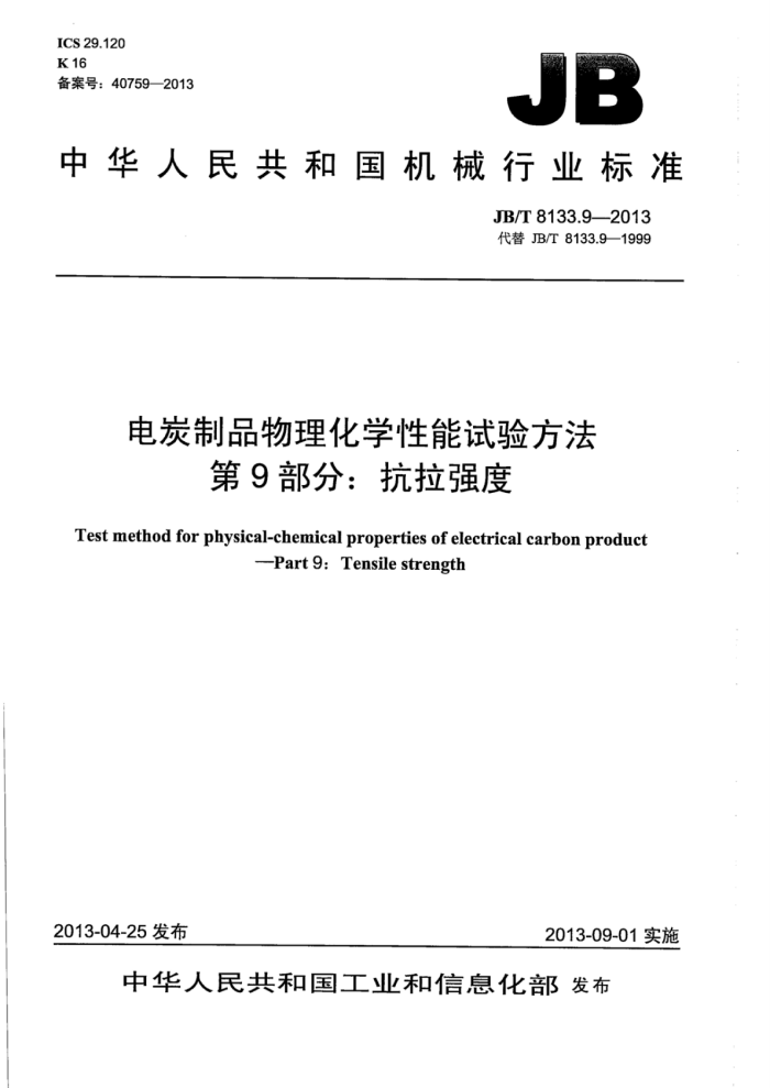 标准名称:电炭制品物理化学性能试验方法 第9部分:抗拉强度
