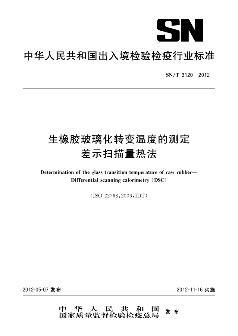 标准名称:生橡胶玻璃化转变温度的测定 差示扫描量热法