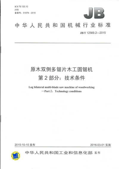 JB/T 12569.2-2015 原木双侧多锯片木工圆锯机 第2部分:技术条件