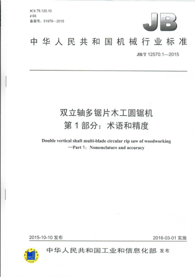 JB/T 12570.1-2015 双立轴多锯片木工圆锯机 第1部分:术语和精度