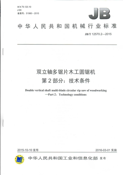 JB/T 12570.2-2015 双立轴多锯片木工圆锯机 第2部分:技术条件